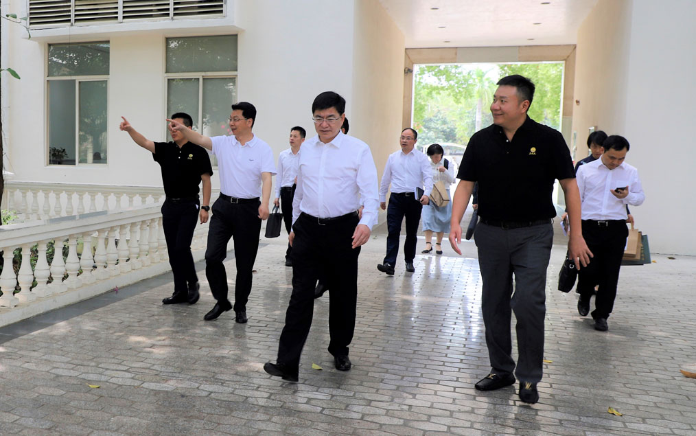 2021年4月7日上午,金華市委書(shū)記陳龍來(lái)到東陽(yáng)光集團(tuán)進(jìn)行考察,集團(tuán)董事長(zhǎng)張?jiān)?、集團(tuán)總經(jīng)理唐新發(fā)陪同并參加座談交流會(huì)。